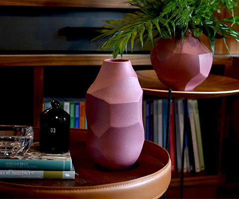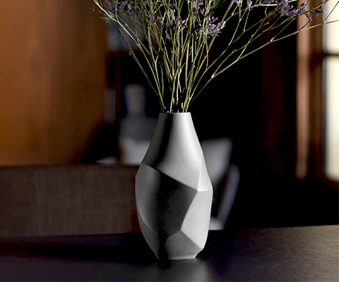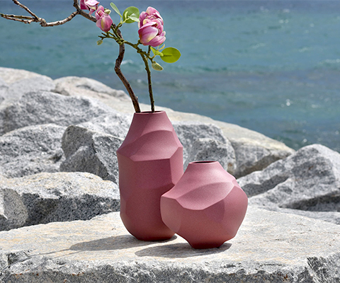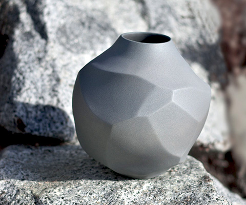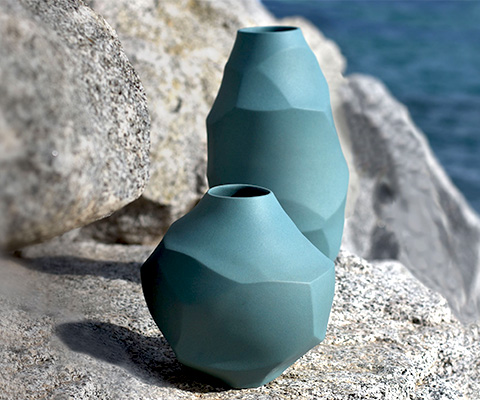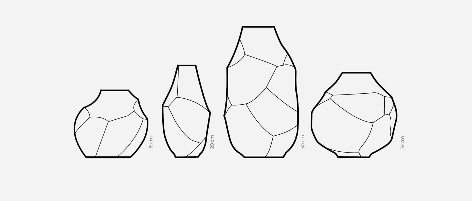 A set of 4 sculptural vases inspired by the shapes created by the carving of Flint in the process of creating tools in the Stone Age.