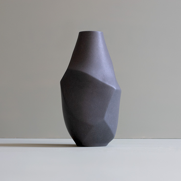 Handcrafted from white porcelain and glazed in a medium, sober gray, featuring a speckled, stone-inspired surface with a soft matte finish. Each piece is personally made and signed by Caio Belfiori.