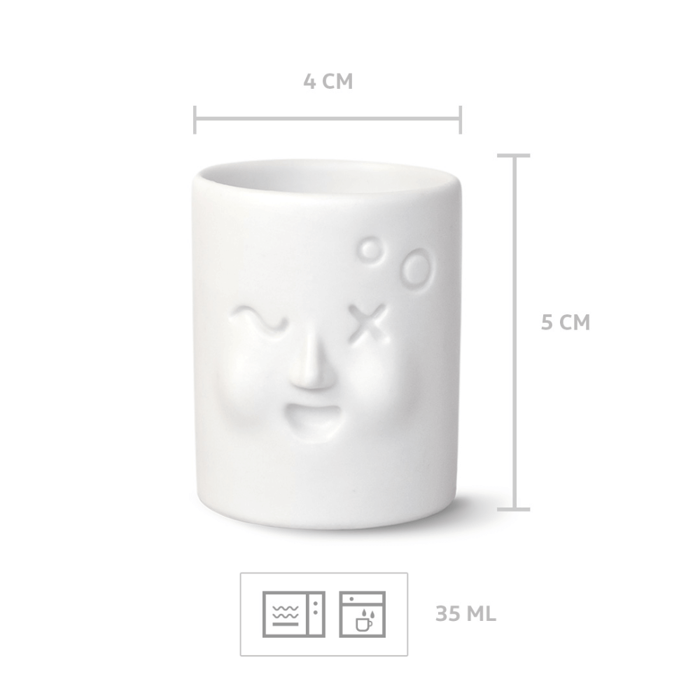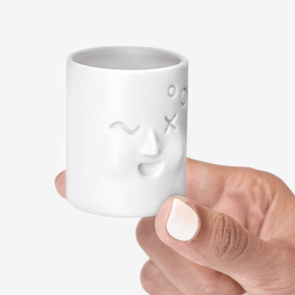 Celebrate big moments with small cups! Save 25% when you buy the set of 4. White matte satin finish, microwave & dishwasher safe. Logo embossed on the base. Designed by Caio Belfiori. Handmade in Spain.